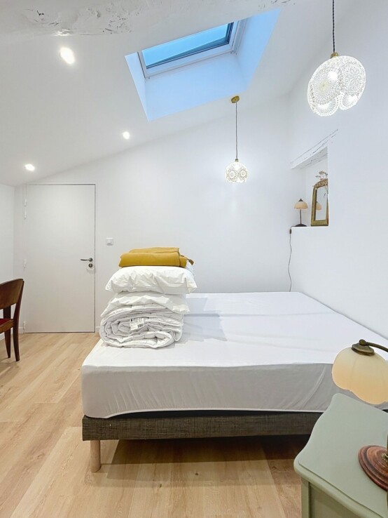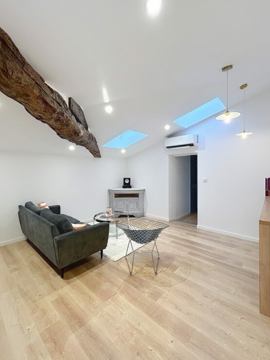 A louer, Charmant 2 pièces au second et dernier étage entièrement rénové, situé dans une belle maison de caractère divisé en plusieurs logements, offrant un cadre de vie agréable et plein de charme.