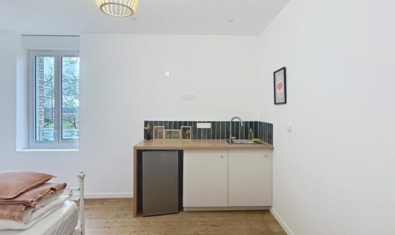 A louer, Charmant 2 pièces au 1er étage, entièrement rénové, situé dans une belle maison de caractère divisée en plusieurs logements, offrant un cadre de vie agréable et plein de charme.