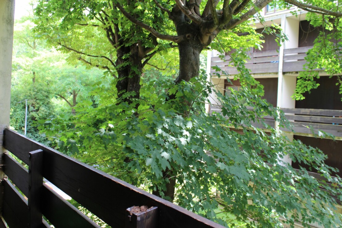 Un balcon donnant sur l’intérieur de la résidence.