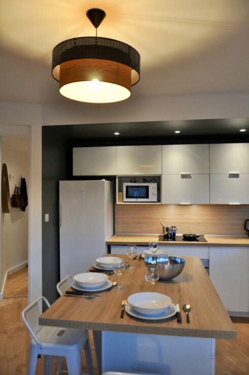 Imaginez-vous dans le spacieux séjour de 25 m², la cuisine, aménagée et équipée, est un véritable espace de vie où vous pourrez préparer vos repas tout en profitant de la convivialité des lieux.