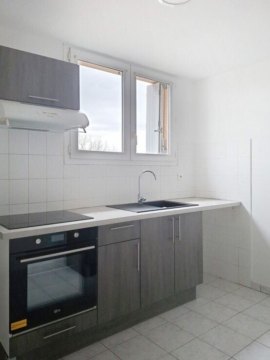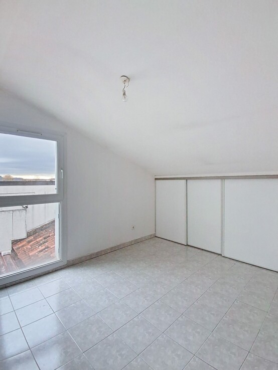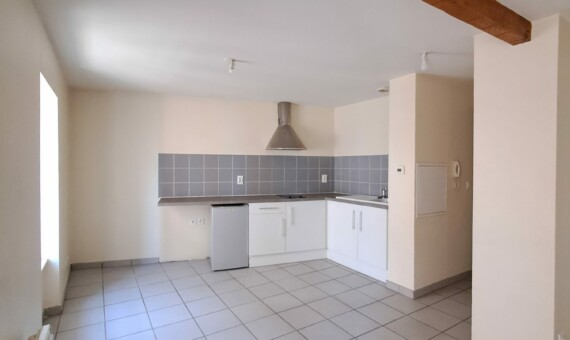 Situé au 1er et dernier étage d’un petit collectif, il se compose d’une cuisine séparée (four, plaques, hotte) et d’une belle pièce à vivre donnant accès à un balcon. L’escalier dessert deux chambres avec placards et une salle de bain. Chauffage gaz de ville.
