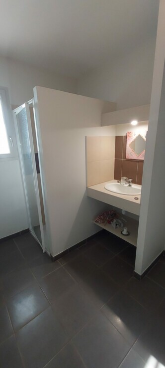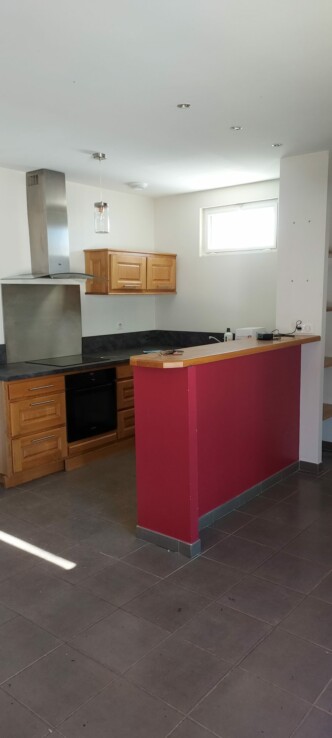 PAULINET – Au centre du village, appartement de type 3. Il est composé de 2 chambres, une grande entrée qui peut faire office d’un bureau. Une salle d’eau, WC séparé. Grande pièce à vivre de 37 m², cuisine équipée (plaque indiction, hotte, four, lave-vaisselle), salon avec une cheminée. Grande terrasse commune.