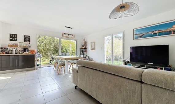 Au 1 er étage un spacieux séjour de 26 m², une cuisine séparée et aménagée, pratique et fonctionnelle, est idéale pour les repas en famille ou entre amis.