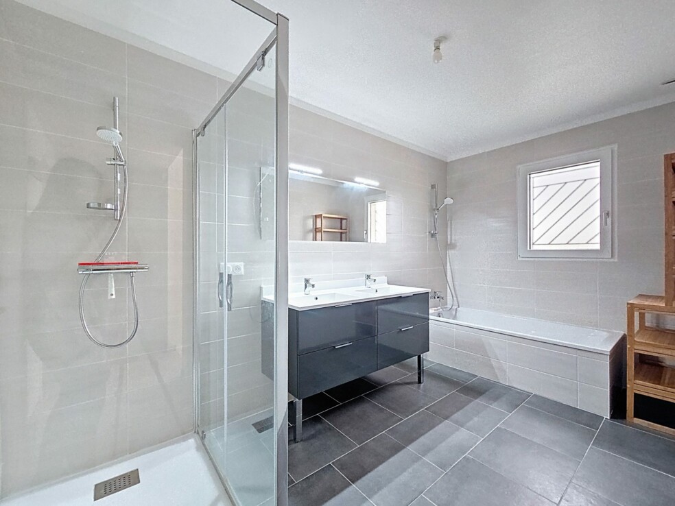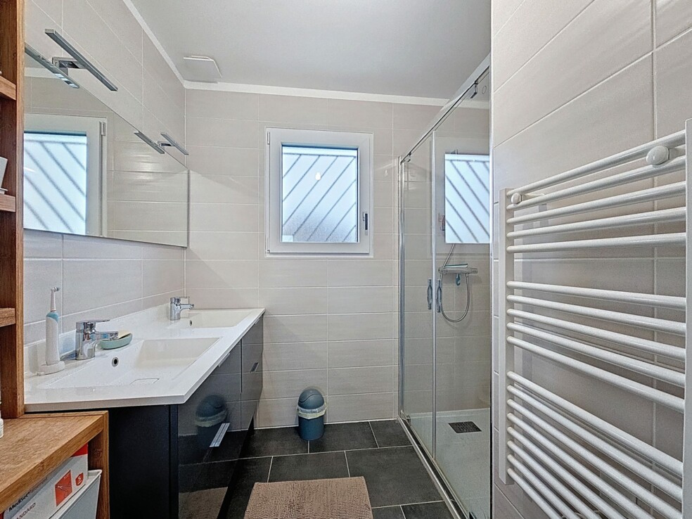 Cette maison est équipée d’un système de chauffage individuel gainable et d’une isolation performante, garantissant un confort thermique optimal toute l’année. Les ouvertures en PVC/aluminium à triple vitrage assurent une excellente isolation phonique et thermique.