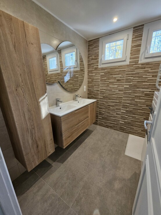 Au rez-de-chaussée, vous trouverez un spacieux séjour de 33 m², parfait pour recevoir vos invités ou profiter de moments en famille. La cuisine aménagée et équipée, de type coin cuisine, est idéale pour les repas conviviaux. Les trois chambres, dont une salle d’eau et un WC indépendant, complètent ce niveau.