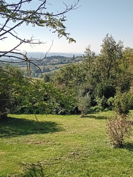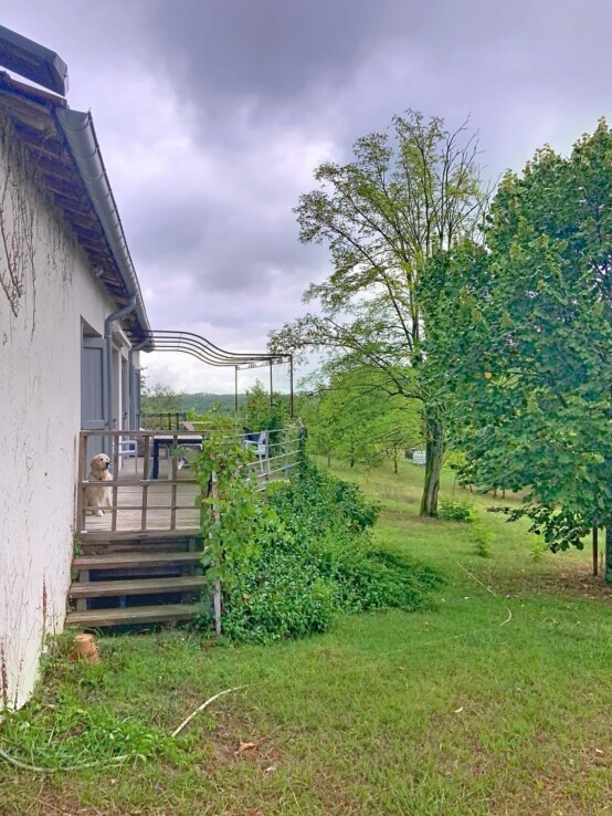 Le salon et la cuisine donnent sur une grande terrasse et une vue imprenable sur une campagne magnifique.