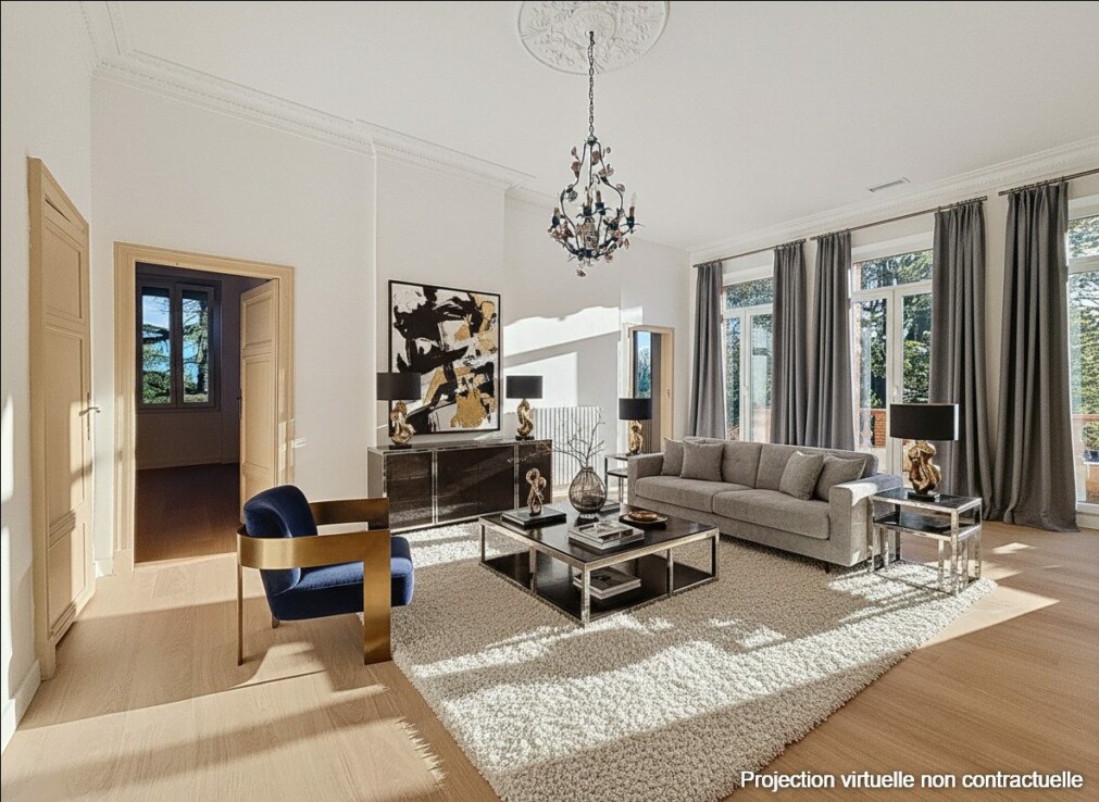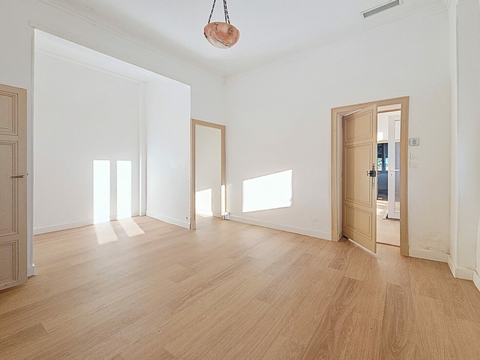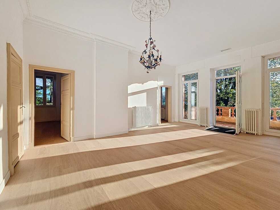 À l’étage vous trouverez la cuisine indépendante , non équipée, avec accès direct sur une terrasse carrelée en travertin de 40 m2 . Au centre de la maison se trouve un salon baigné de lumière autour duquel s’articule quatre chambres spacieuses dont une avec sa salle d’eau et son WC privatif. Les hauts plafonds de 3,20 m ajoutent une touche de grandeur et de sophistication.