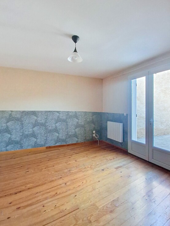 Au rez-de-chaussée, un séjour donnant sur une cuisine ouverte, un wc, un accès terrasse. Au premier étage, deux chambres et un bureau, une salle de bain et un wc indépendant. Chauffage fioul ou radiateurs électriques.