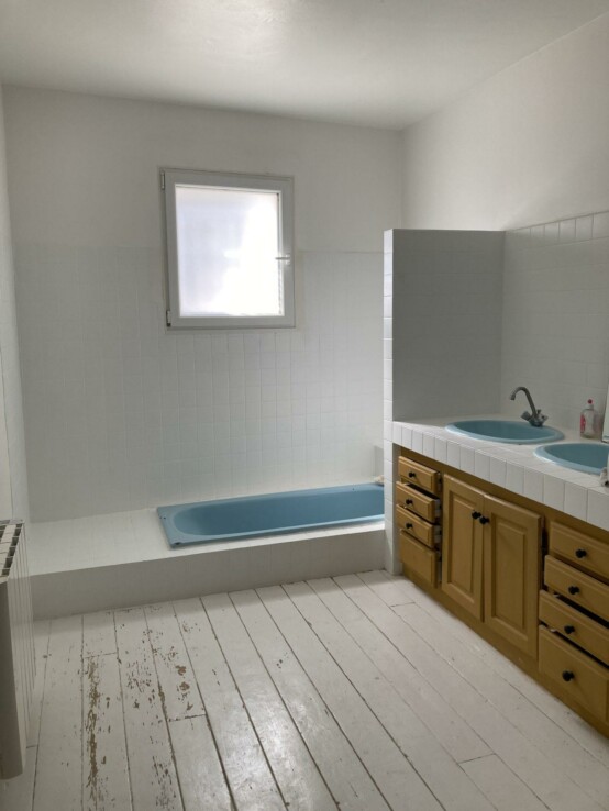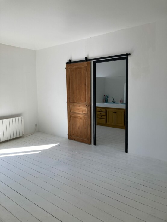 Au 2ème étage, 2 chambres et une grande pièce dans laquelle les arrivées d’eau pour faire une 2ème salle de bain sont déjà prévues.
