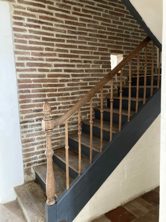 Après le passage de l’escalier, un salon / cuisine donnant sur une terrasse avec un cabanon et un jardin clos de murs. Ce dernier donne sur une autre rue avec un portail qui permet de rentrer une voiture.