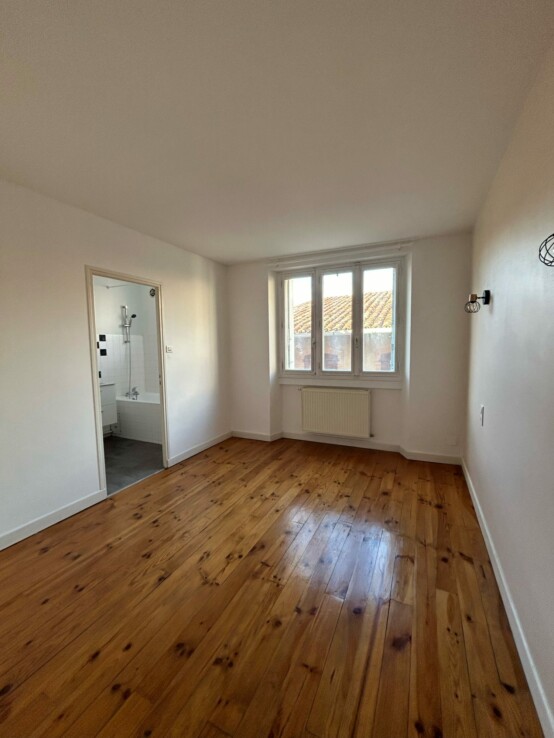 Maison de ville en plein cœur de Gaillac , comprenant au RDC une entrée avec placard , un séjour lumineux et une cuisine ouverte aménagée ( lave vaisselle, plaque de cuisson , et hotte ) , WC indépendant.