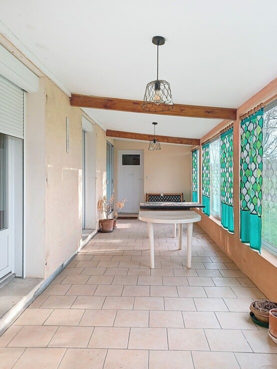 Avec ses 8 pièces spacieuses, elle se compose d’un séjour, une cuisine séparée, 4 chambres et une salle de bain ainsi qu’une 2 -ème partie avec 4 pièces et salle d’eau idéale pour les grandes familles ,ceux qui aiment recevoir ou une activité professionnelle à domicile. Une véranda de 25m2 et un sous-sol de 120m2 complète le bien.