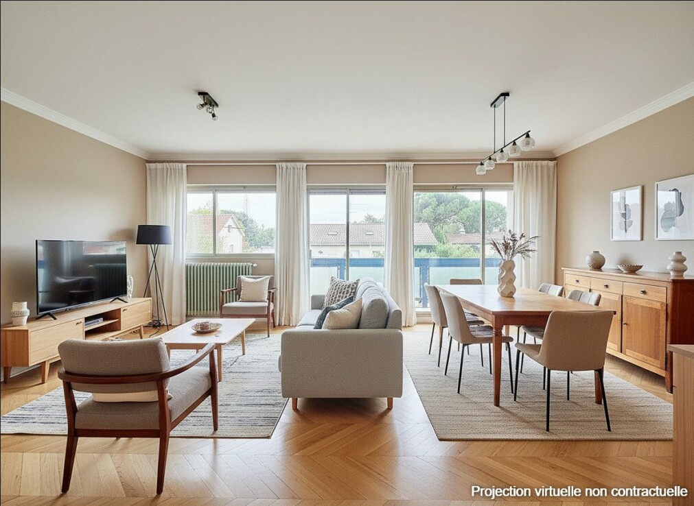 Vous pouvez conserver la vie à l’étage, et profiter de la vue dégagée et de la luminosité, avec son balcon plein sud (pouvant être agrandie en terrasse à vivre) et sa cuisine ouvrable sur le salon, ou, basculer la vie au rez-de-chaussée comme projeté sur la photo (devis et plans réalisés).